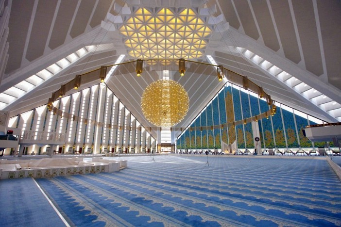 مارگلہ کی پہاڑوں کی دامن میں ایک شاہکار کی طرح واقع فیصل مسجد پاکستان کی قومی مسجد ہے ، جو دارالحکومت اسلام آباد میں واقع ہے ۔ یہ دنیا کی پانچویں سب سے بڑی ، مشرق وسطی میں سب سے بڑی اور جنوبی ایشیا میں سب سے بڑی مسجد ہے ۔ اس کا نام سعودی عرب کے مرحوم بادشاہ شاہ فیصل کے نام پر رکھا گیا ہے ۔ مسجد میں ایک عصری ڈیزائن ہے جو کنکریٹ کے خول کے آٹھ اطراف پر مشتمل ہے اور یہ ایک عام بیدوئن خیمے کے ڈیزائن سے متاثر ہے ۔ پاکستان میں سیاحوں کی توجہ کا ایک بڑا مرکز ، یہ مسجد اسلامی فن تعمیر کا ایک عصری اور بااثر حصہ ہے ۔ مسجد کی تعمیر 1976 میں سعودی بادشاہ فیصل کی طرف سے 2 کروڑ 80 لاکھ ڈالرز کی گرانٹ کے بعد شروع ہوئی ، جس کے نام پر مسجد ہے ۔ ترک معمار ویدات دالوکے کے غیر روایتی ڈیزائن کا انتخاب ایک بین الاقوامی مقابلے کے بعد کیا گیا تھا ۔ ایک عام گنبد کے بغیر ، مسجد بیدوئن خیمے کی شکل کی ہے ، جس کے گرد چار 260 فٹ (79 میٹر) اونچے مینار ہیں ۔ اس ڈیزائن میں آٹھ رخا خول کی شکل کی ڈھلوان چھتیں ہیں جو ایک سہ رخی عبادت گاہ بناتی ہیں جس میں 10,000 نمازی بیٹھ سکتے ہیں ۔ مشترکہ ڈھانچہ 33 ایکڑ (130,000 مربع میٹر ؛ 1,400,000 مربع فٹ) کے رقبے پر محیط ہے ۔ مسجد اسلام آباد کے ایک اہم جگہ پر واقع ہے ۔ یہ فیصل ایونیو کے شمالی سرے پر واقع ہے ، جو اسے شہر کے شمالی سرے پر اور ہمالیہ کے مغربی دامن مارگلہ پہاڑیوں کے دامن میں رکھتا ہے ۔ یہ قومی پارک کے دلکش پس منظر کے بر خلاف زمین کے ایک بلند علاقے پر واقع ہے ۔ فیصل مسجد 1986 سے 1993 تک دنیا کی سب سے بڑی مسجد تھی جب اسے سعودی عرب کی مساجد نے رقبے کے لحاظ پیچھے چھوڑ دیا تھا ۔ فیصل مسجد گنجائش کے لحاظ سے اب دنیا کی چھٹی سب سے بڑی مسجد ہے ۔ دیوار قبلہ نیلی اور سفید خطاطی ٹائلوں سے ڈھکی ہوئی ہے جسے ایک ترک فنکار مینگو ارٹل نے ڈیزائن کیا ہے ۔ مسجد کے اندرونی حصے میں ترکی اور پاکستان سے کی خطاطی سے متاثر سجاوٹ کا استعمال کیا گیا ہے ۔ مسجد معاصر اور کلاسیکی اسلامی فن تعمیر کو ملا کر اپنے ذاتی ڈیزائن کے لیے ایک غیر معمولی راستہ اختیار کرتی ہے ۔ انوکھا ڈیزائن اس کے زیادہ تر عناصر خانہ بدوش (بیدوئن) خیمے سے ملتاہے ، فیصل مسجد میں تقریبا 300,000 نمازی نماز ادا کر سکتے ہیں ۔ مسجد کے چار میناروں میں سے ہر ایک 79 میٹر (230 فٹ) اونچا (جنوبی ایشیا کا سب سے اونچا مینار) ہے اور اس کا دائرہ 10 × 10 میٹر ہے ۔ اہم علاقوں میں اندرونی ہال اور صحن سمیت اہم علاقوں میں 74000 افراد کو رکھنے کی گنجائش ہے ۔ مسجد کے آس پاس کے میدانوں میں 200,000 افراد پر مشتمل ہونے کی گنجائش ہے ۔